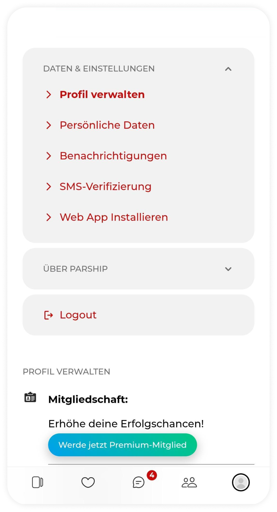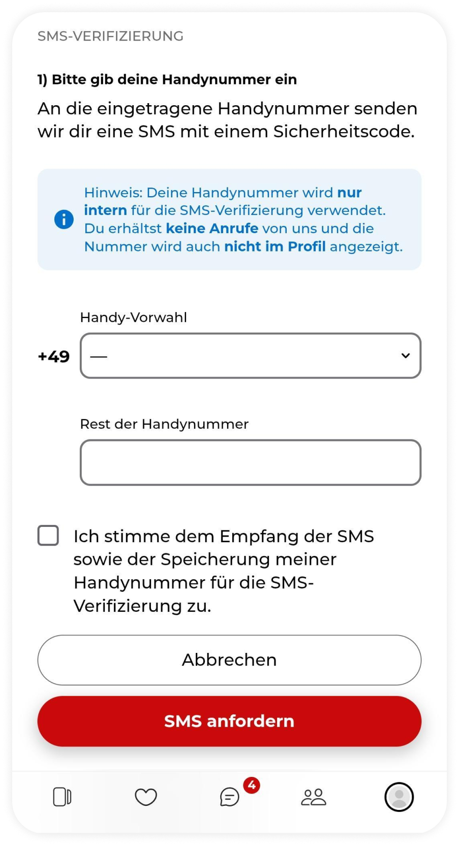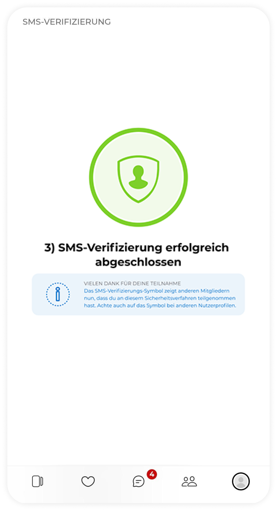 Signalisiere die Echtheit deines Profils durch die SMS-Verifizierung und erhalte sofort mehr Kontaktanfragen! So einfach geht’s: